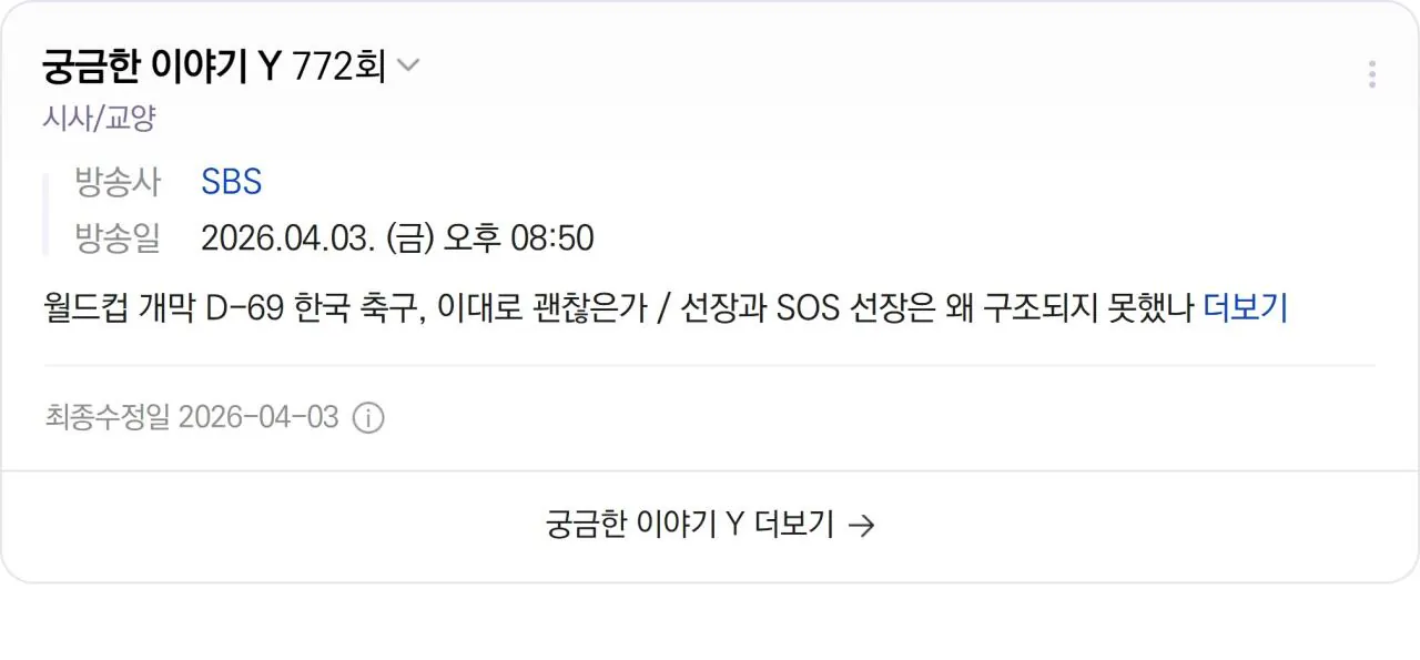 월드컵 중계권 안 살 예정인 공중파 근황 조회 521 | 댓글 0건 가비슈포댄서 2시간전 지금 궁금한이야기Y에서 축구대표팀 까는 중인데 월드컵 앞두고 보통은 방송사들 웬만하면 월드컵 띄울려고 하는데 이번엔 어차피 공중파들 중계도 안하니 대놓고 까네 ㅋㅋㅋㅋㅋ 0