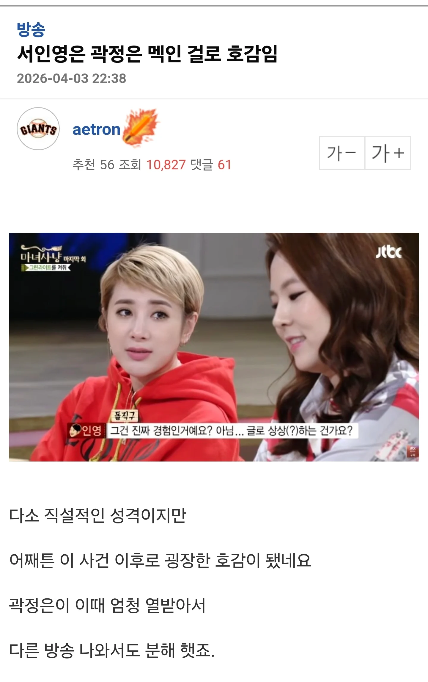 서인영은 이걸로 호감임
