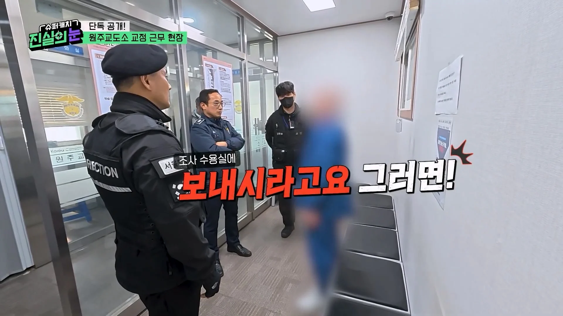 조사 수용실에 못 보내는 이유가 있는데 조사 수용실에 보내면 분에 못 이겨서 이물질을 먹는 사람이라서 조사 수용실에 못 보냄
