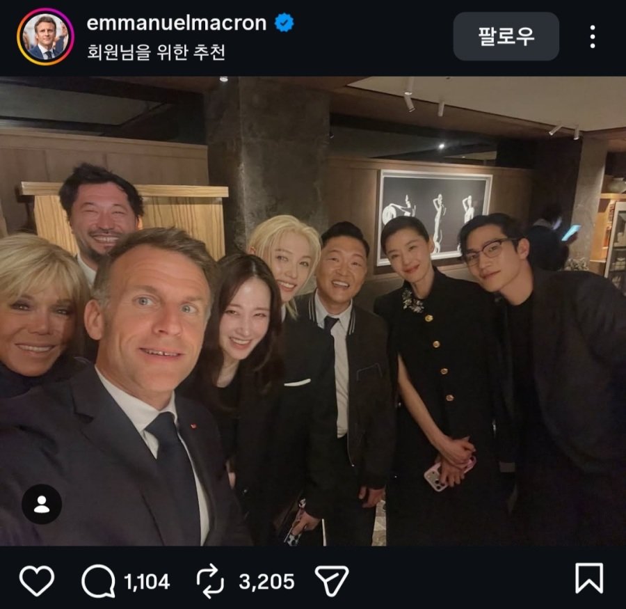 마크롱 대통령이랑 같이 사진찍은 한국 연예인들