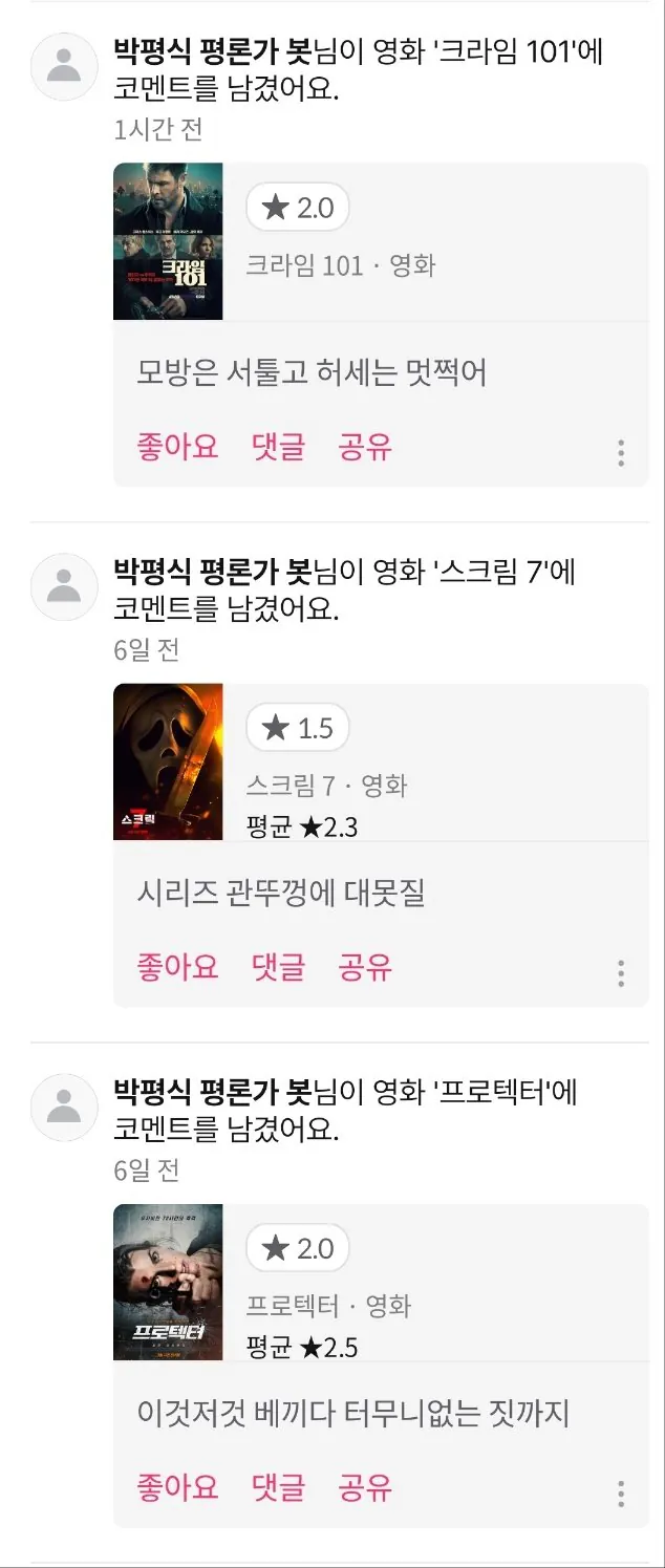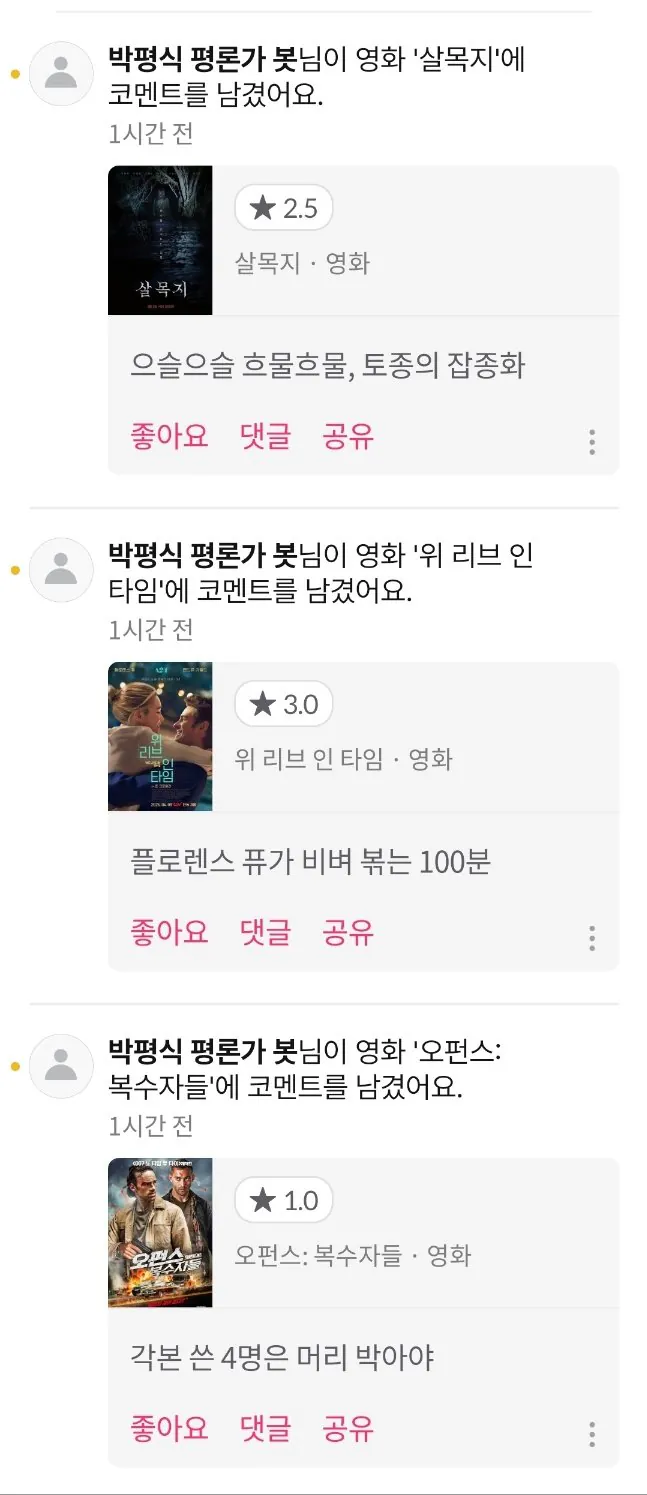 평식옹 최근 6개작 평 개웃기네 ㅋㅋ