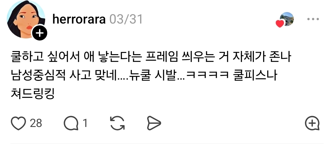 30대 초반 여자들 사이에서 애 낳는 게 뉴쿨이 되었다 함