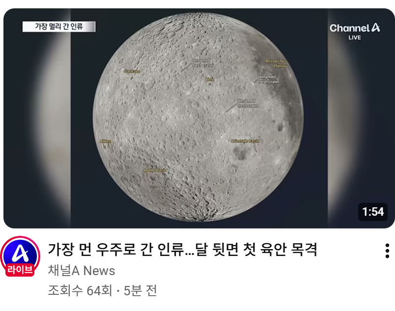 뭐시라? 네명이 인류 역사상 처음으로 육안으로 달 뒷면을 관측했다고?