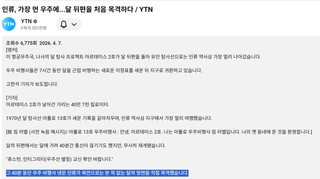 아르테미스 2호 관련 언론사들 오보가 봇물처럼 쏟아짐