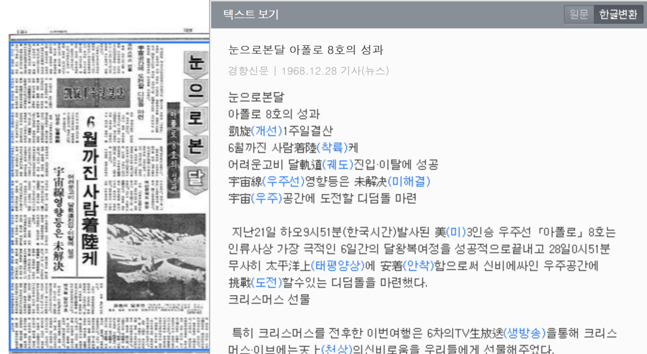 1968년 12월 28일 경향신문 '눈으로 본달' 이라고 보도하고 있음.