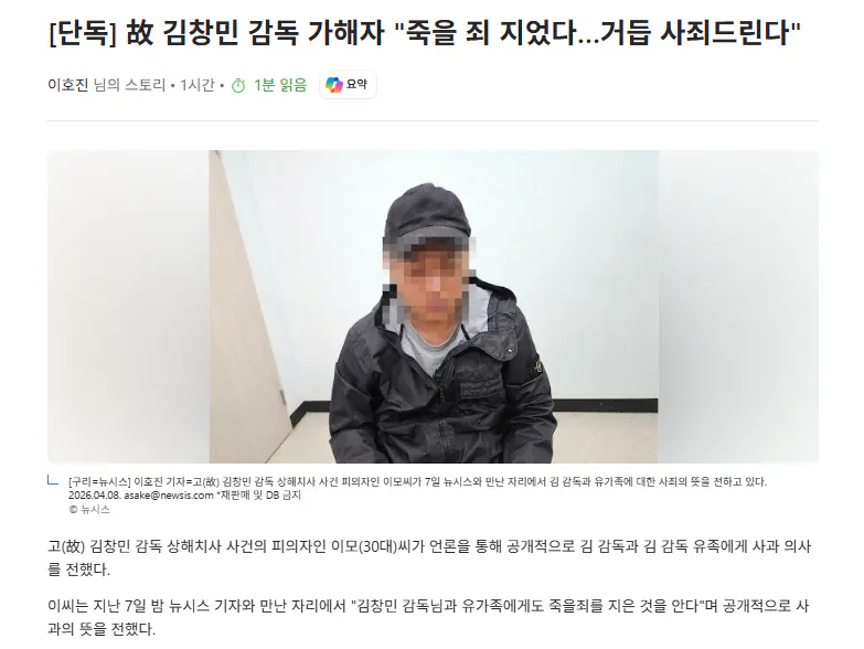 故 김창민감독 가해자 "죽을 죄 지었다 거듭 사죄드린다" 조회 559 | 댓글 0건 강승 5시간전 [단독]故김창민 감독 가해자 "죽을 죄 지었다…거듭 사죄드린다" :: 공감언론 뉴시스 :: 0