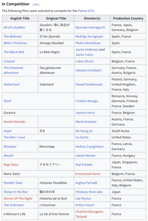 2026년 칸 영화제 경쟁부문 라인업