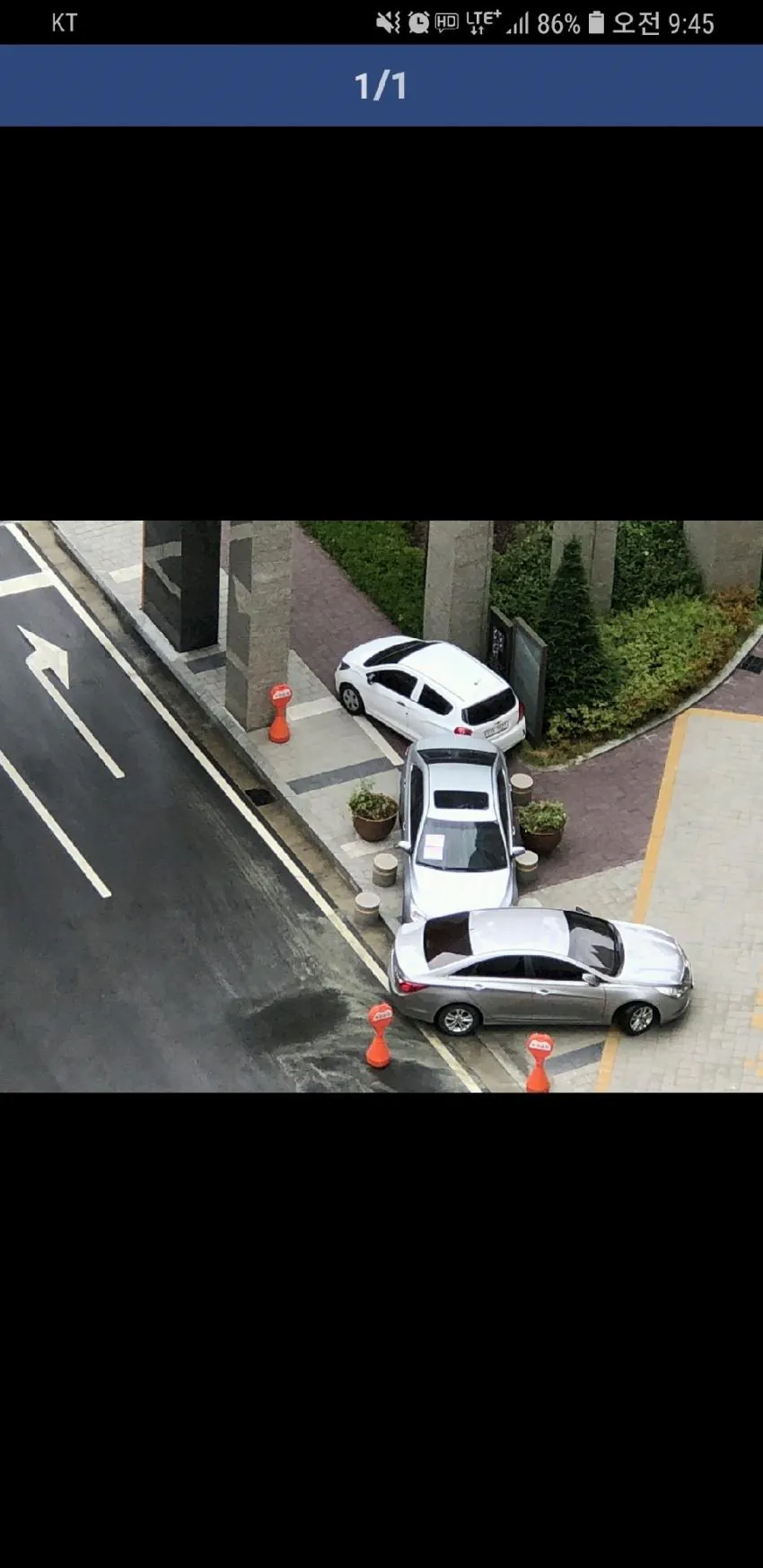 3. 주민 20명이 [들어서] 인도 쪽으로 옮기고 차 못빼게 앞뒤로 주차, 옆으로 경계석 옮겨놓음