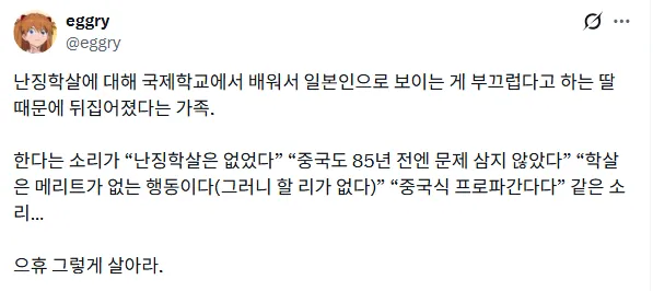 ??? : 딸이 난징대학살을 알아서 걱정됩니다.