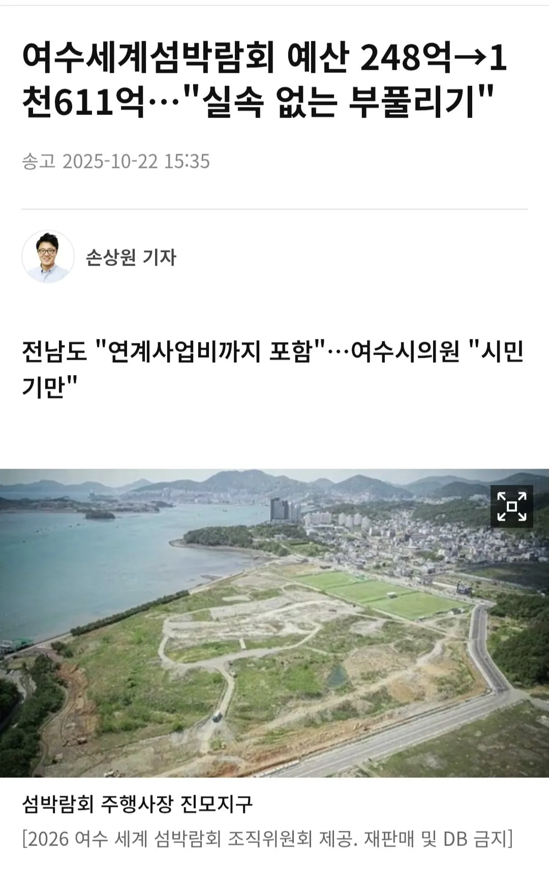 여수 섬박람회가 더 심각한 이유 조회 595 | 댓글 0건 가비슈포댄서 3시간전 논란의 잼버리 세금 1100억 여수 섬박람회 혈세 1600억 ㅋㅋㅋㅋㅋㅋㅋㅋ 참고로 5개월남았는데 공사 ㅈ도안됐다 0