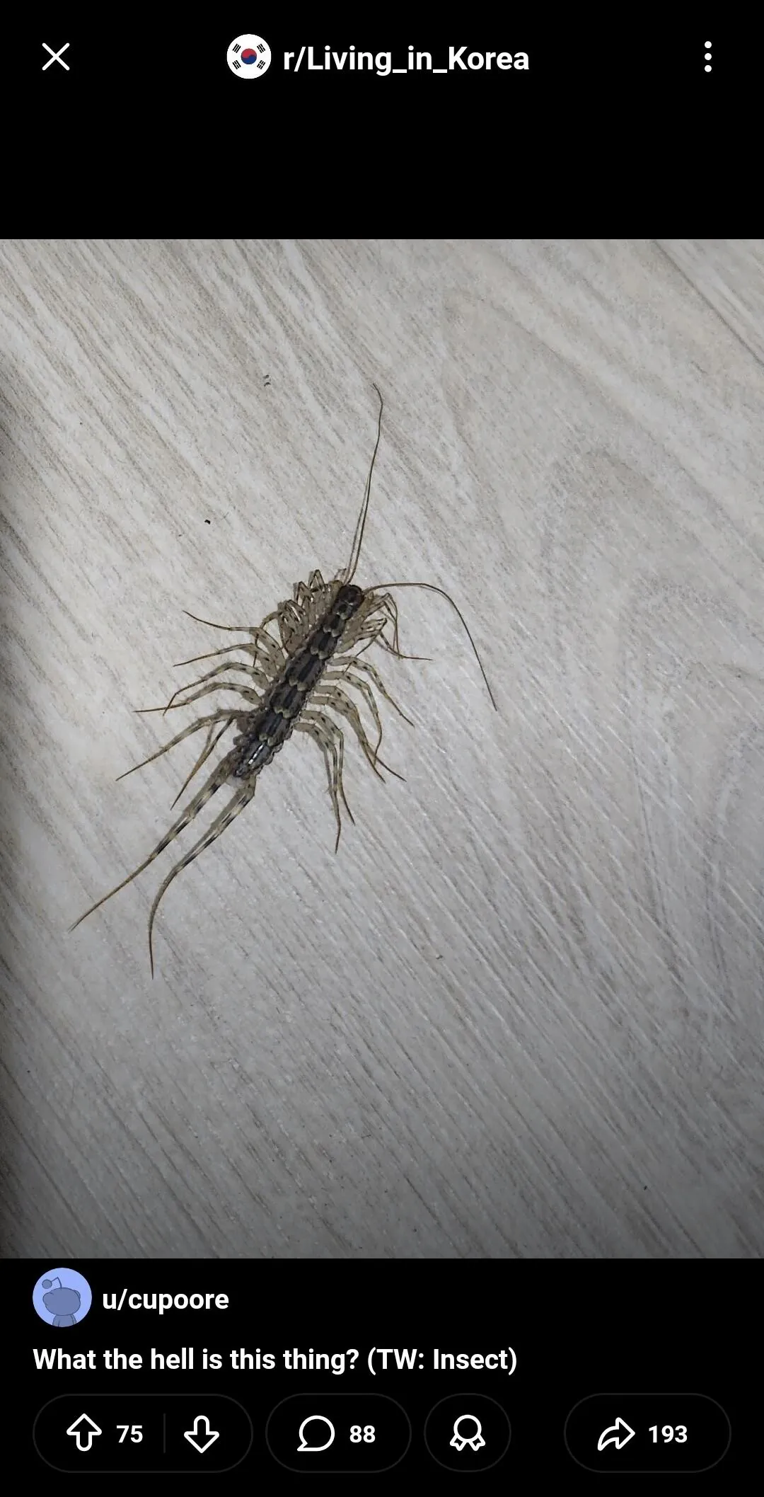 약혐) 한국에서 돈벌레 처음 본 외국인 조회 564 | 댓글 0건 더한마음 3시간전 "헉 이거 도대체 무슨 벌레냐 ??" 댓글다는 고인물 외국인들: ???: 머니버그임. 니 새친구다 ???: 그거 "money bug (돈벌레)"임. 죽이지 마 ㅋㅋ ???: ㅋㅋ 어릴 적 보던거 기억나네 ???: 그거 사람한테 이로움. 잡다한 해충 잡아먹어줌. 그니까 이거 보면 집에 바퀴벌레도 많다는거 알아둬라 0