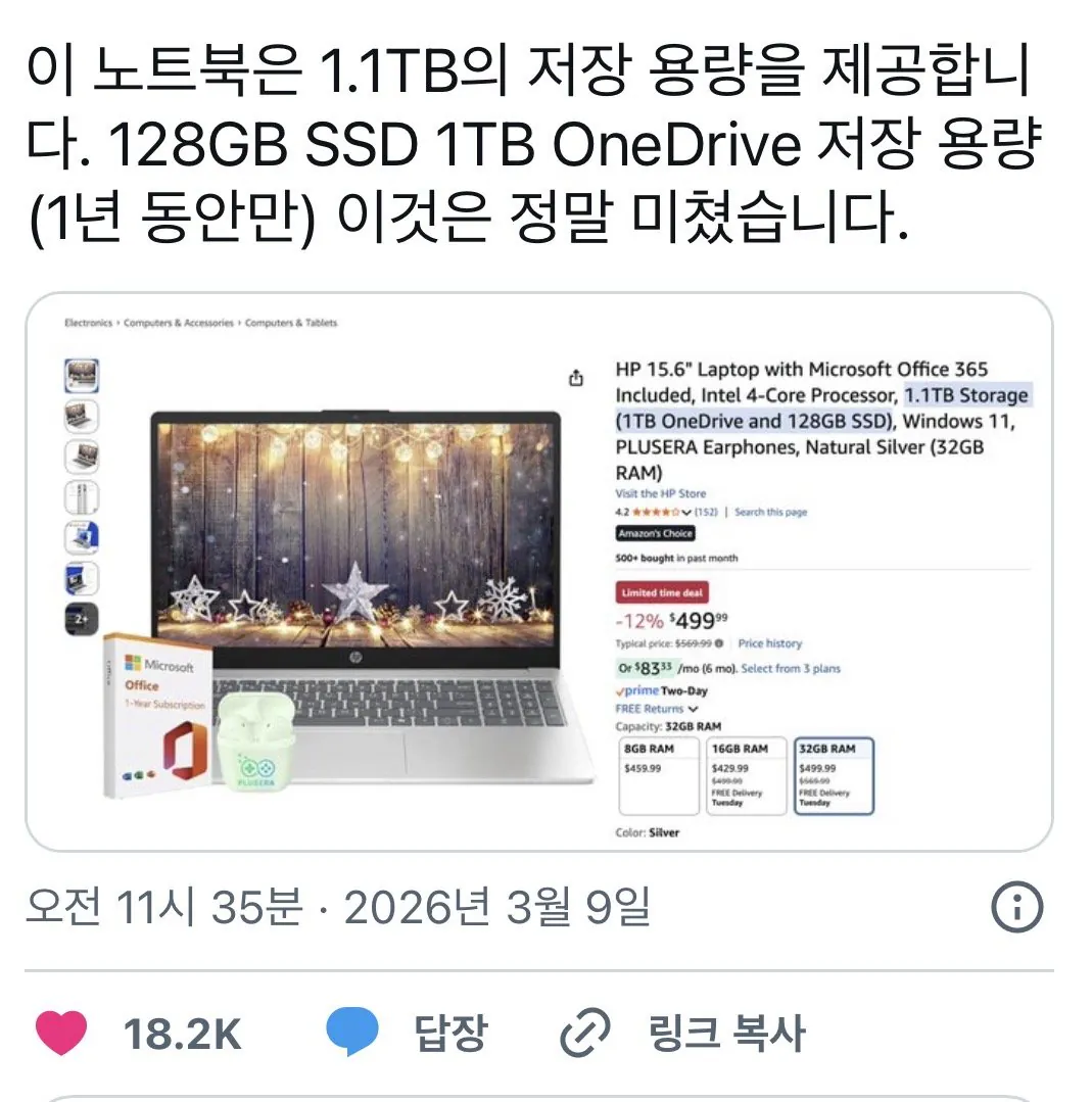 저장 용량이 무려 1.1TB 노트북 근황