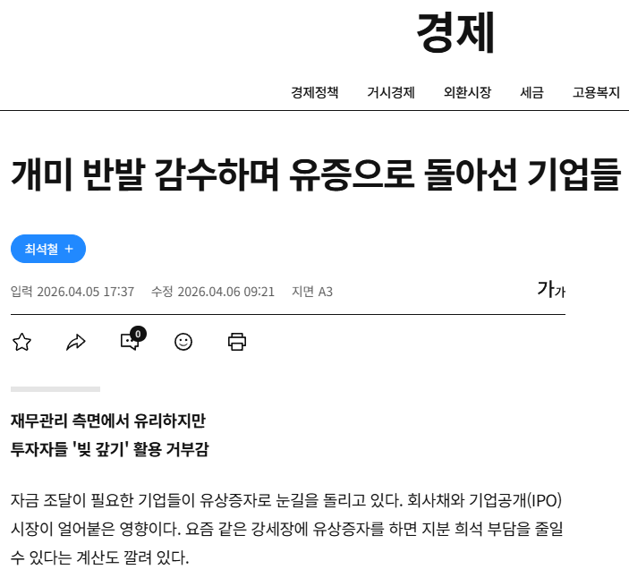 이제는 유상증자로 돌아선 코스피 기업들