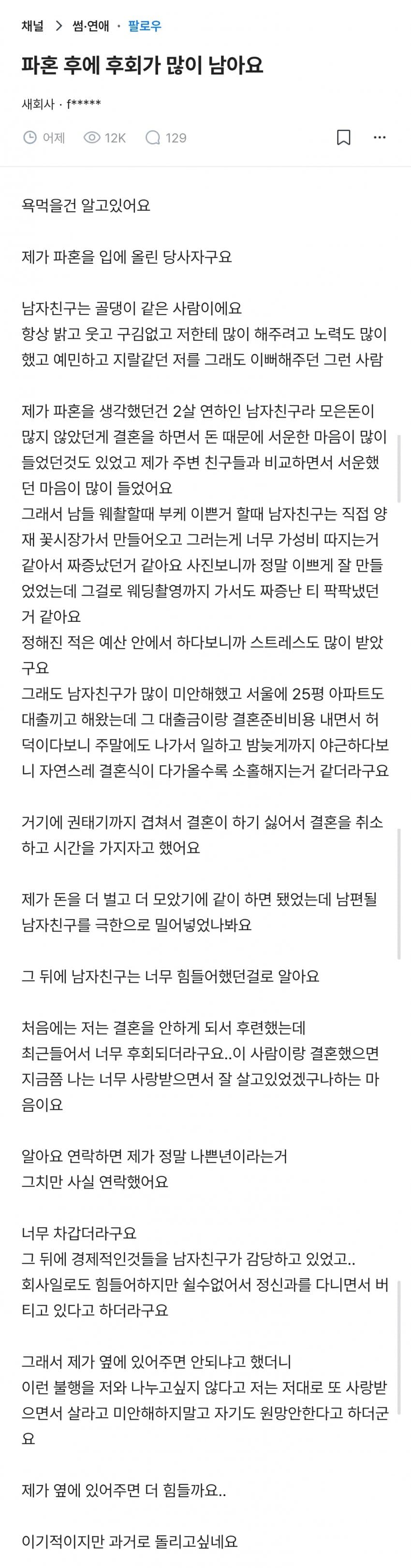 + 잠깐 소홀해졌다고 파혼해버려?